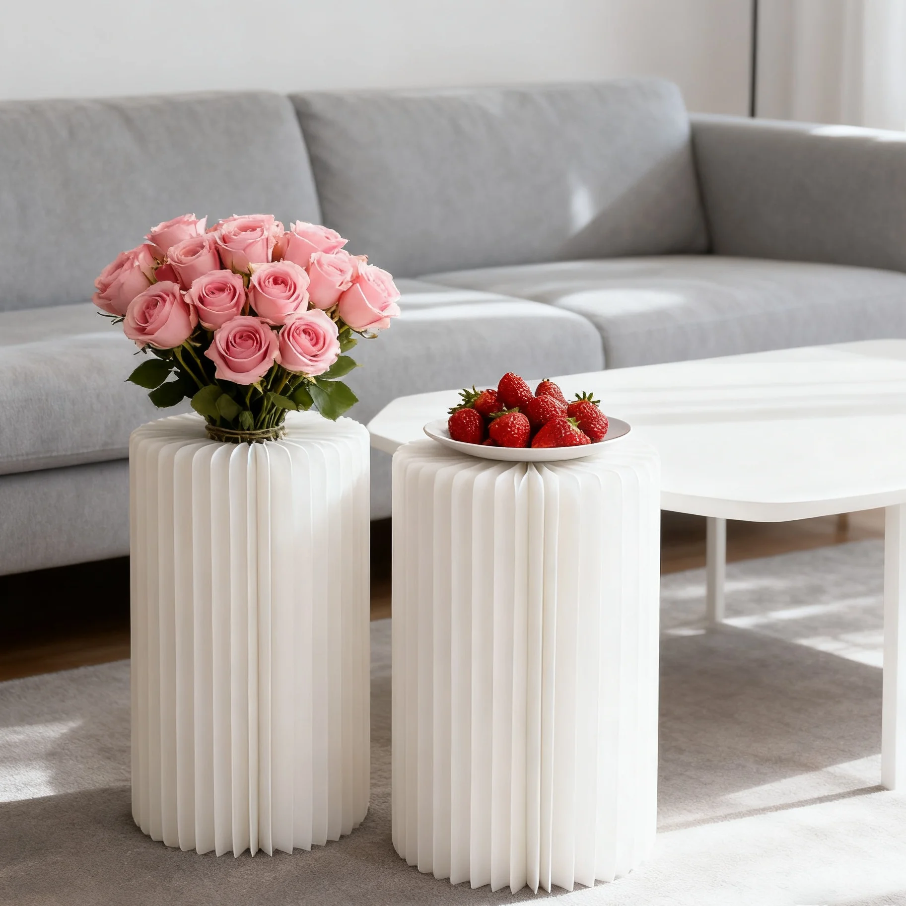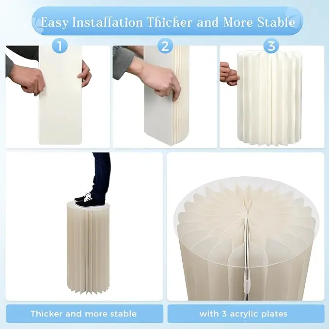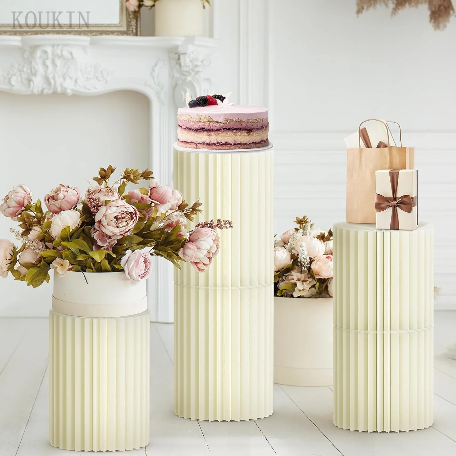 2 foldable paper pillars display base, milky white wedding display, birthday party decoration, dessert table paper Roman pillar
