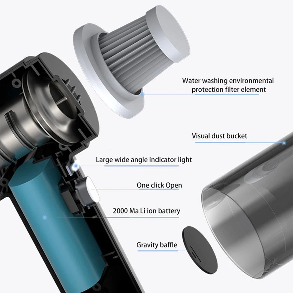 3. Instant Cleanup with Potent Suction: With its ability to quickly attract various kinds of debris, pet hair, coal smoke, and water stains, the cordless handheld vacuum cleaner ensures your spaces are spotless in seconds, offering powerful air duster capabilities in a compact form.