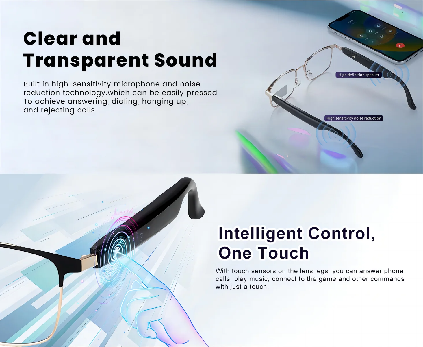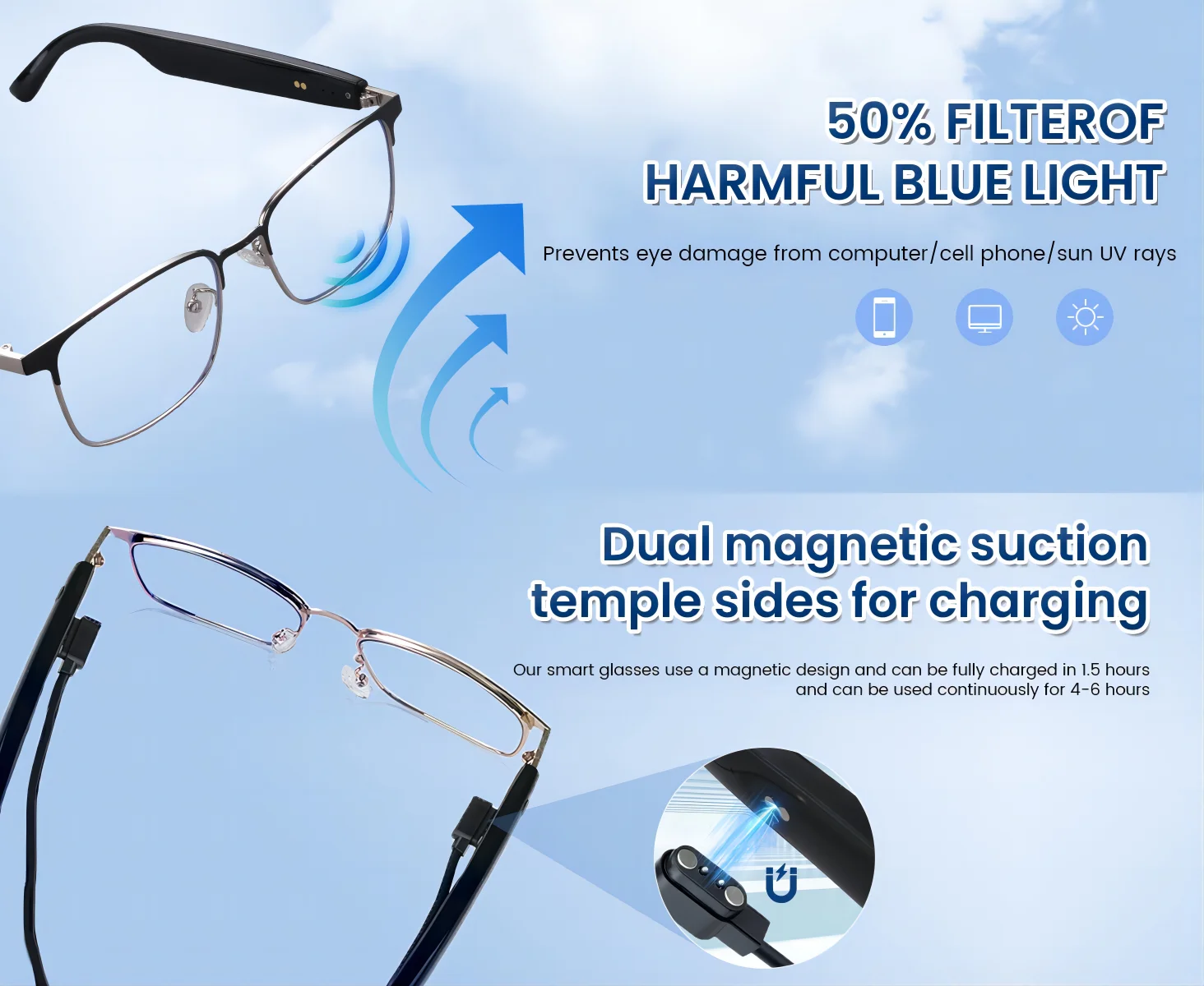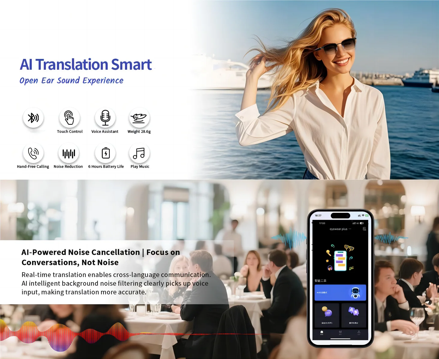 AI Translation Smart Glasses, photochromic lenses, support 160+ languages real-time translation, fashionable audio glasses.