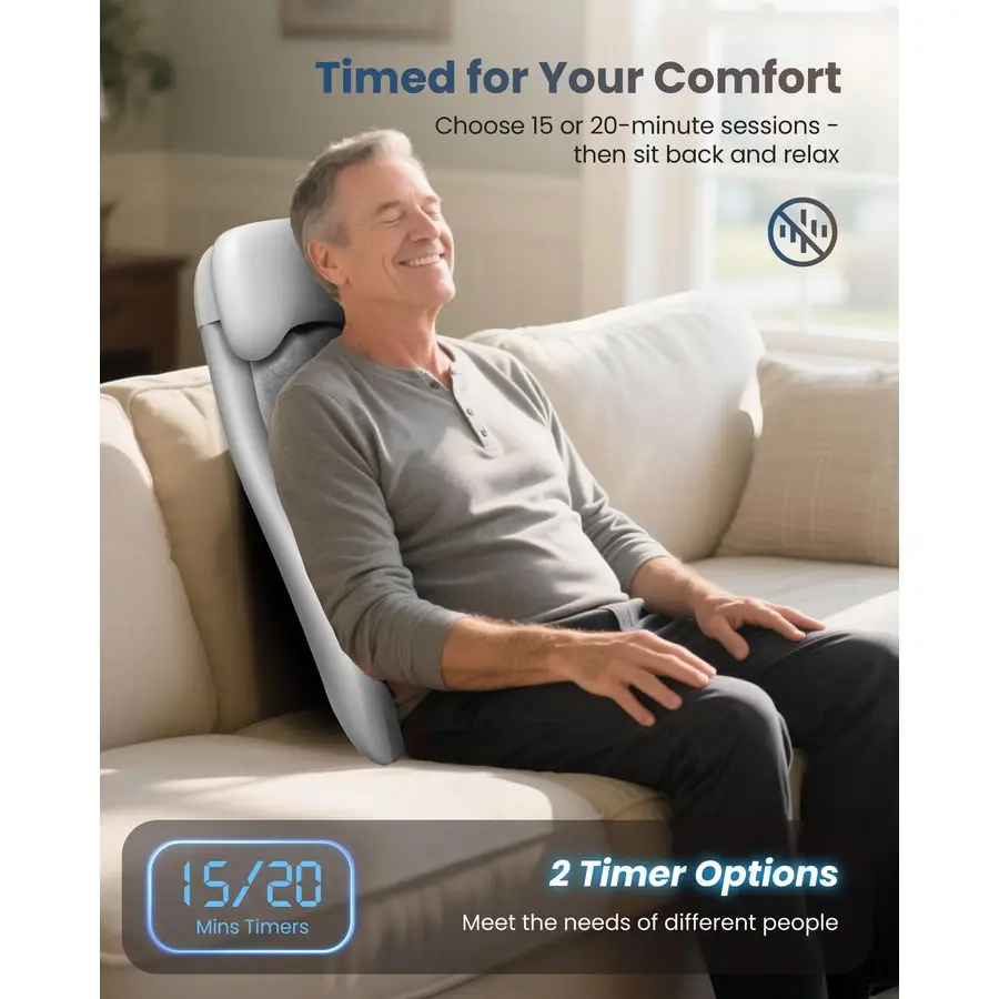 Massage Chair Pad with Comprehensive Functions Comfier back massager with heat combines shiatsu, spot, rolling and vibration massage and heat functions for a comprehensive relaxation experience. Shiatsu amp rolling kneads the back, while the seat offers vibration massage. Also, there are builtin heating function for back, which can greatly promote blood circulation and relax muscles. Besides, there are 15 20 mins auto timer available for overheat protection.