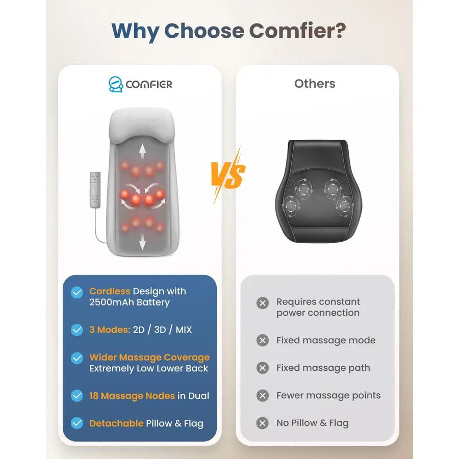 Cordless Back Massage Chair Pad with Multi Functions, 2D 3D Mix Shiatsu Neck and Back Massager with Heat, Chair Massager for Hom