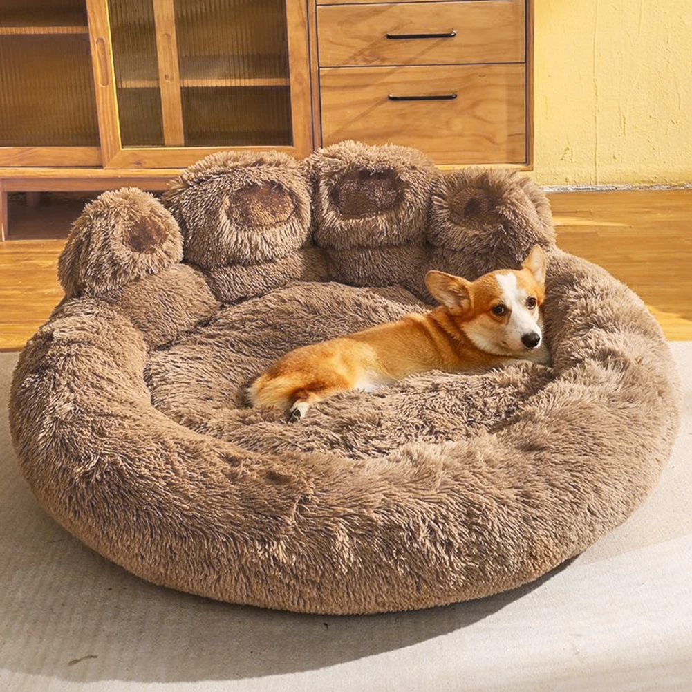 30 Inch/43 Inch Calming Dog Bed Paw Shape Plush Dog Bed with Removable Cover Donut Dog Bed Washable for Puppy and Kitten Feature:
