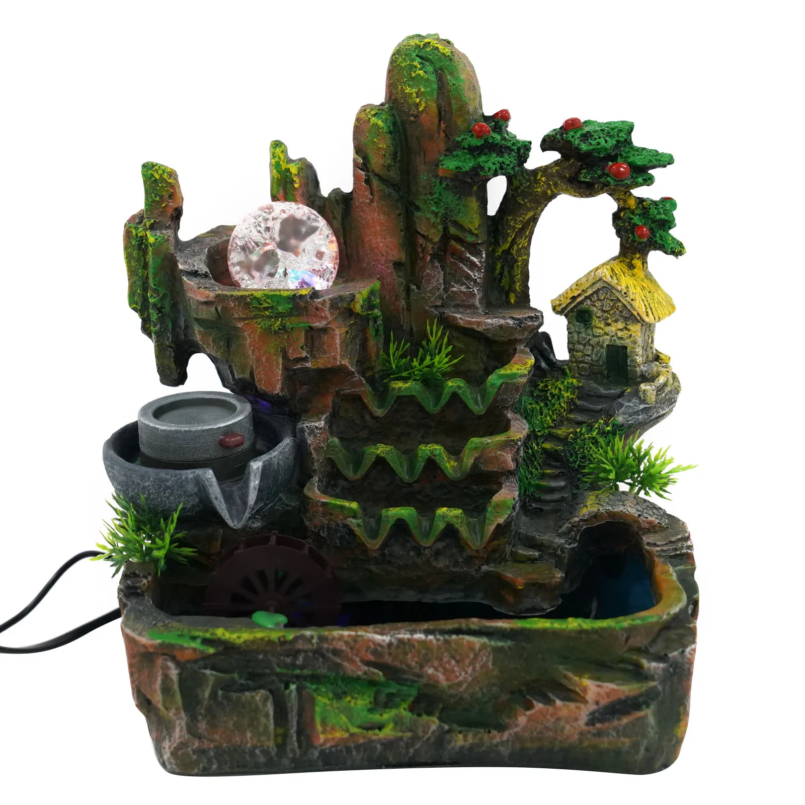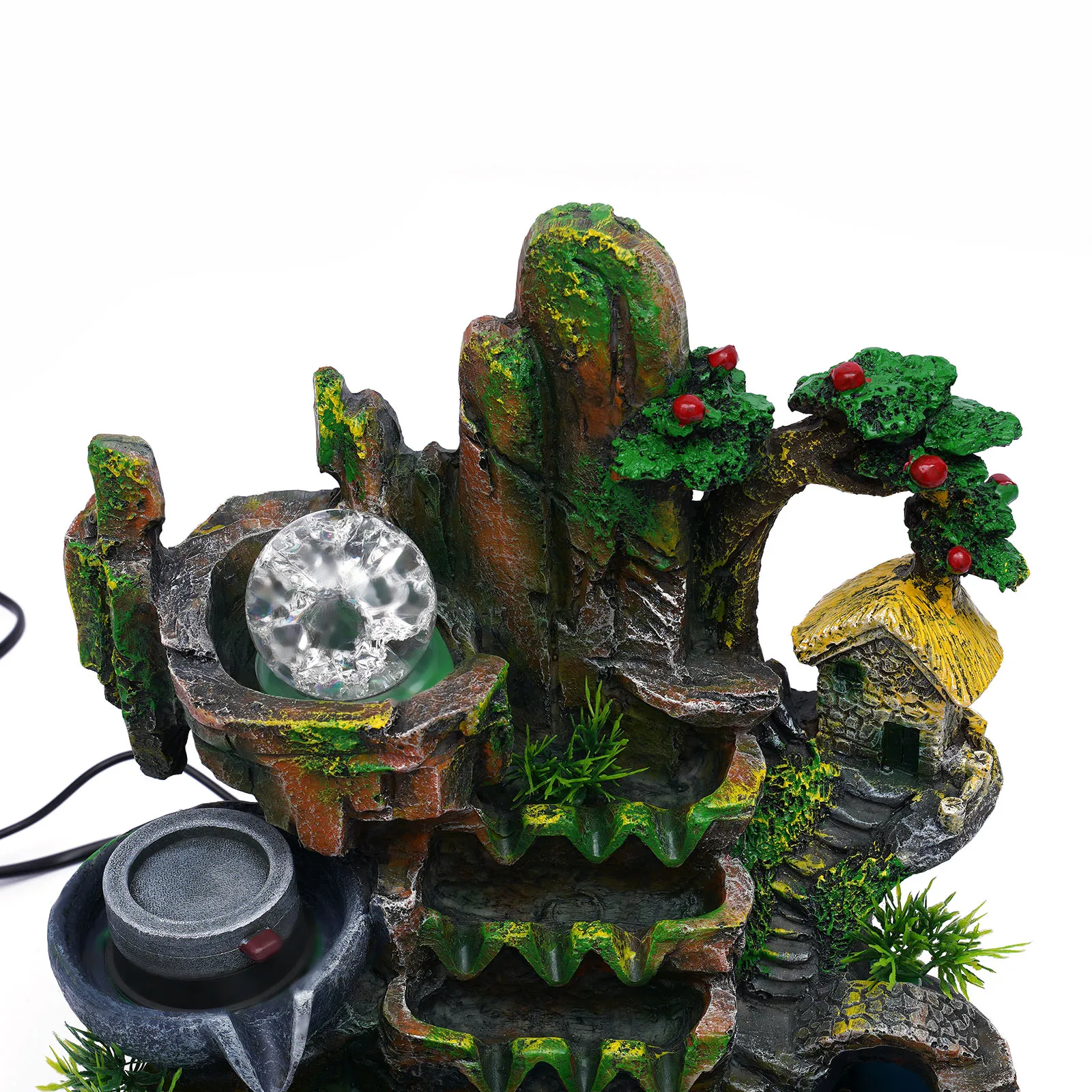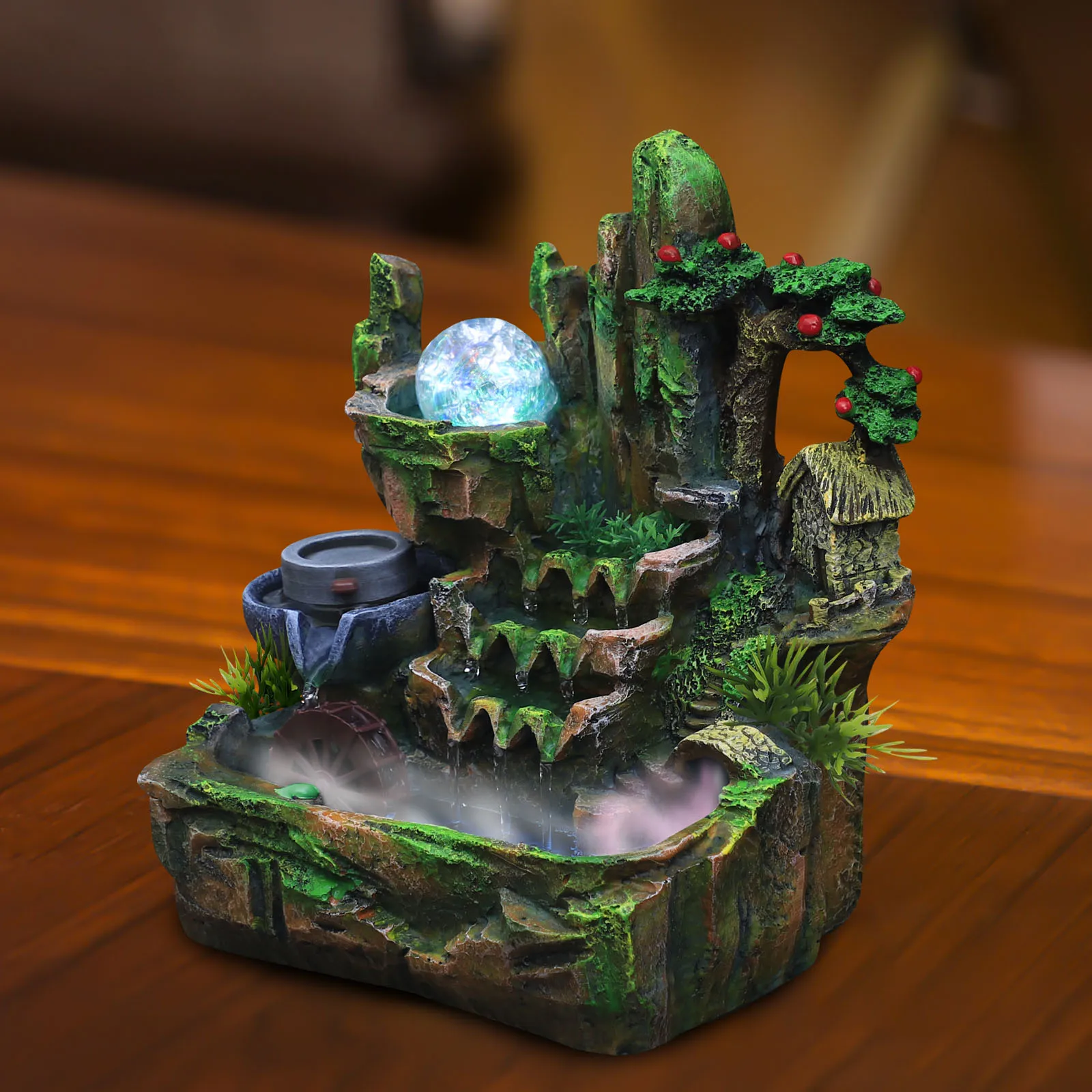 Feng Shui Water Fountain Desktop Color Changing LED Lights 110V US Plug Rustic Resin Office Decor Flowing Waterfall 26x20x28cm