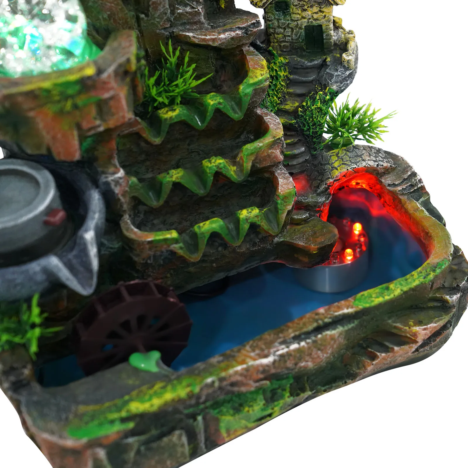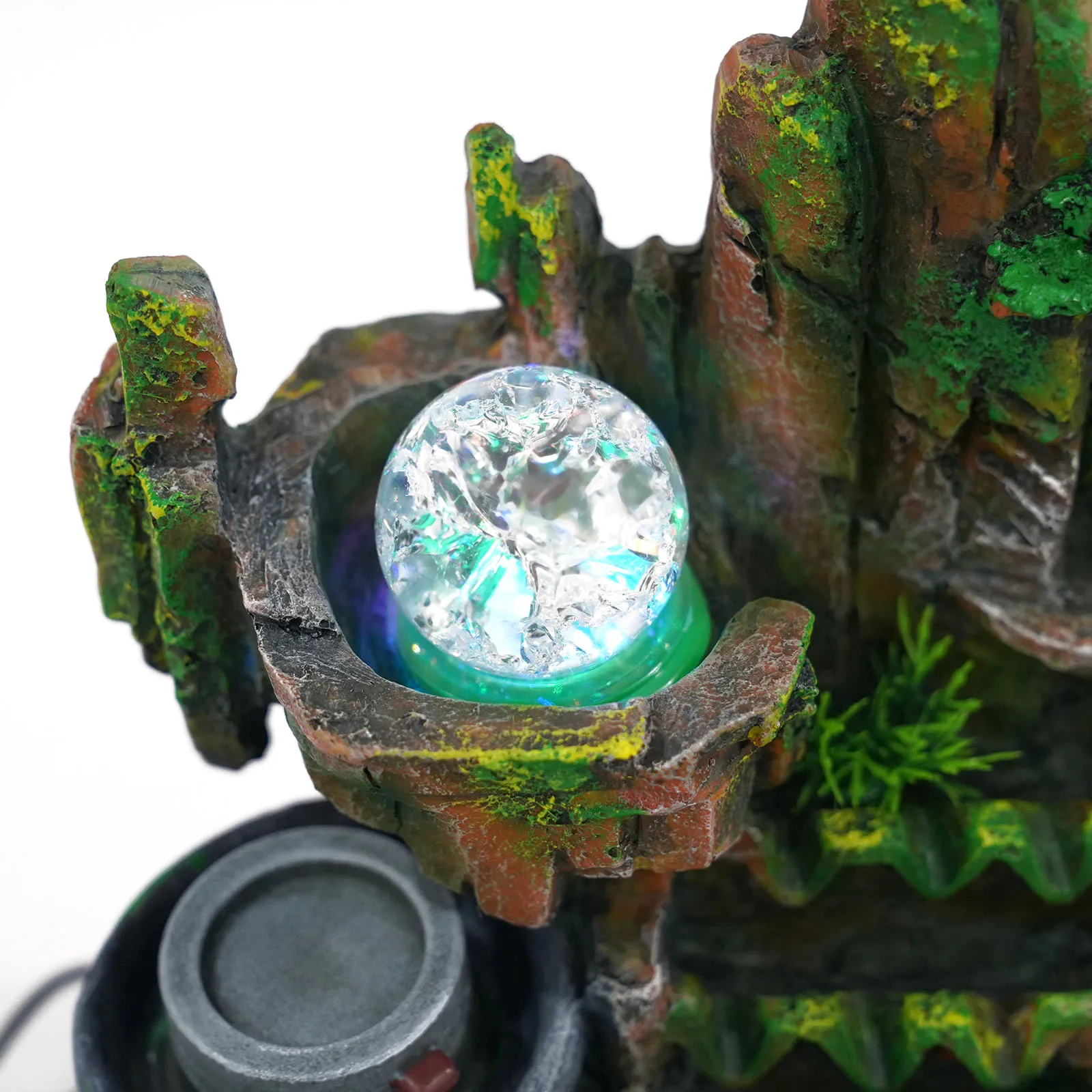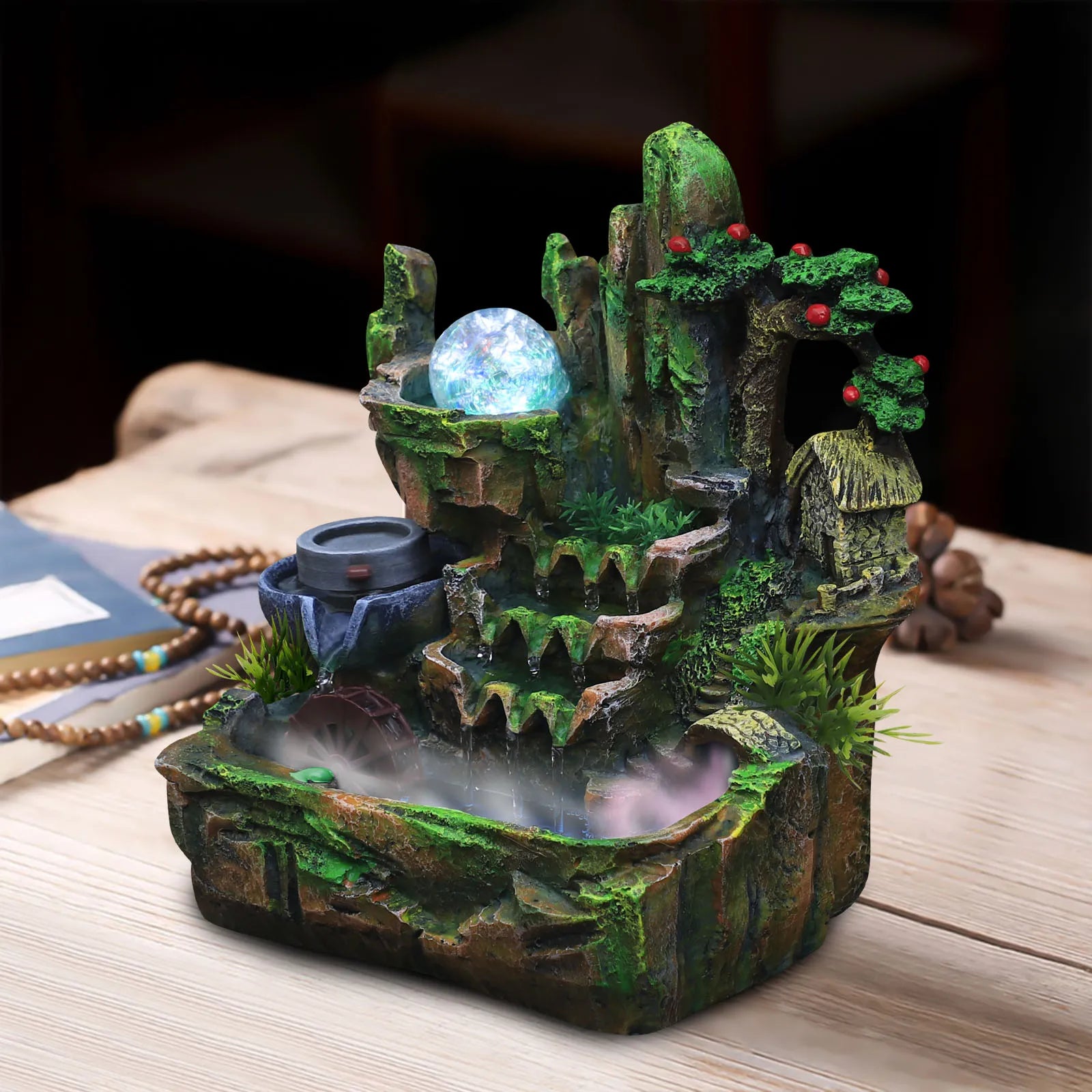 Feng Shui Water Fountain Desktop Color Changing LED Lights 110V US Plug Rustic Resin Office Decor Flowing Waterfall 26x20x28cm