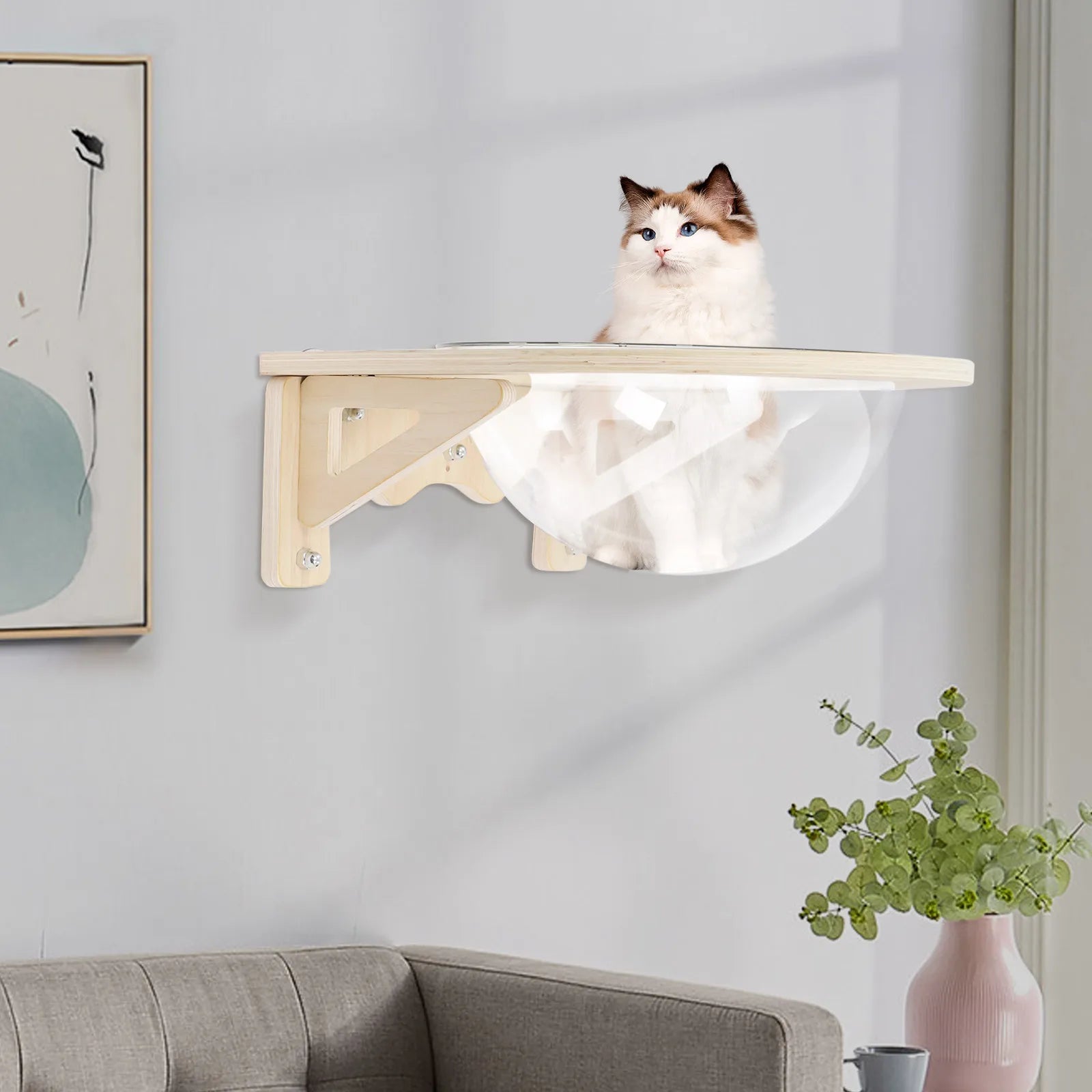 Modern Wall Mounted Cat Bubble Bed, Transparent Cat Capsule Pod, Clear Window Cat Hammock, Cozy Hanging Pet Bed for Indoor Cats