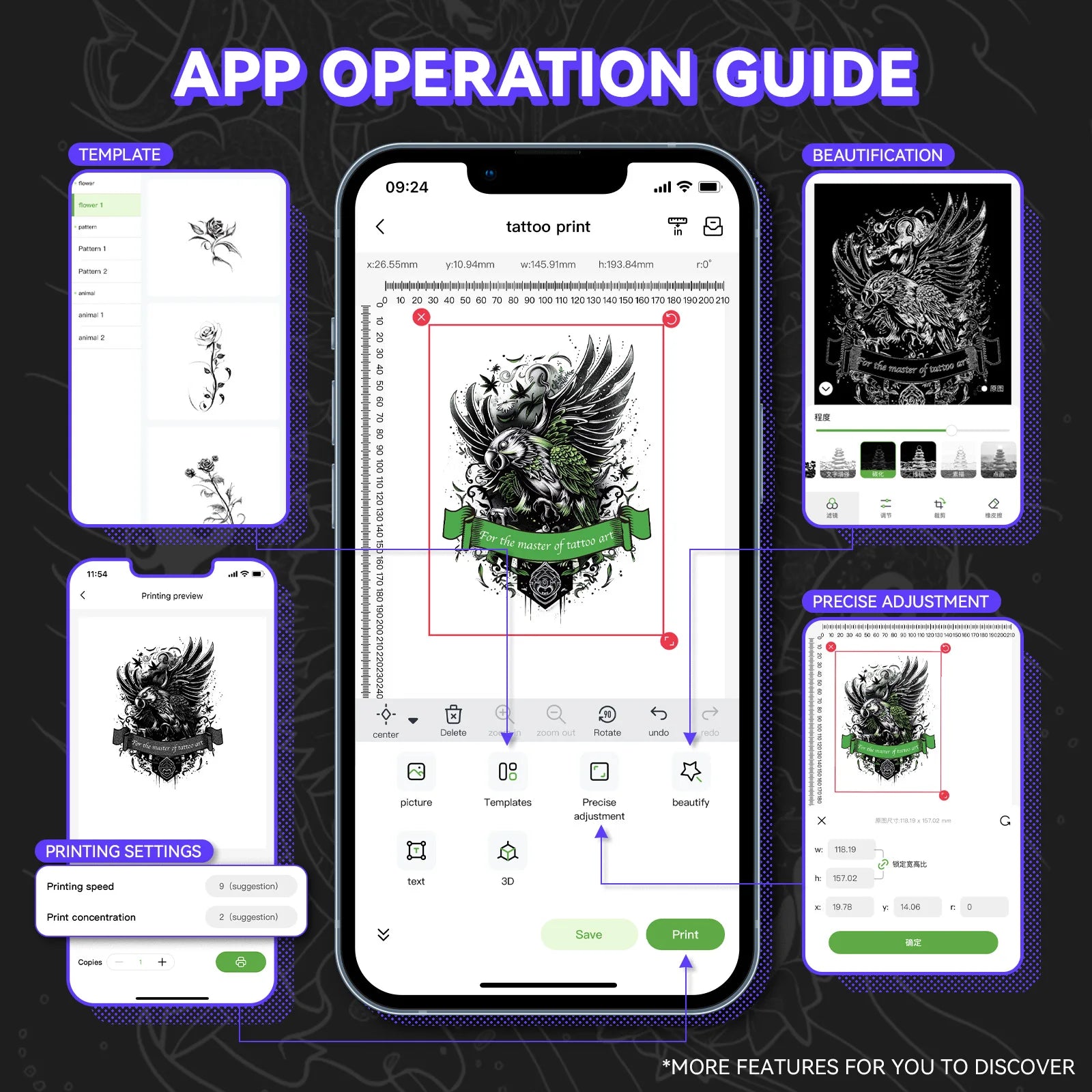 PeriPage P90 Wireless Tattoo Transfer Stencil Printer, Thermal Tattoo Machine with 5pcs Free Transfer Paper