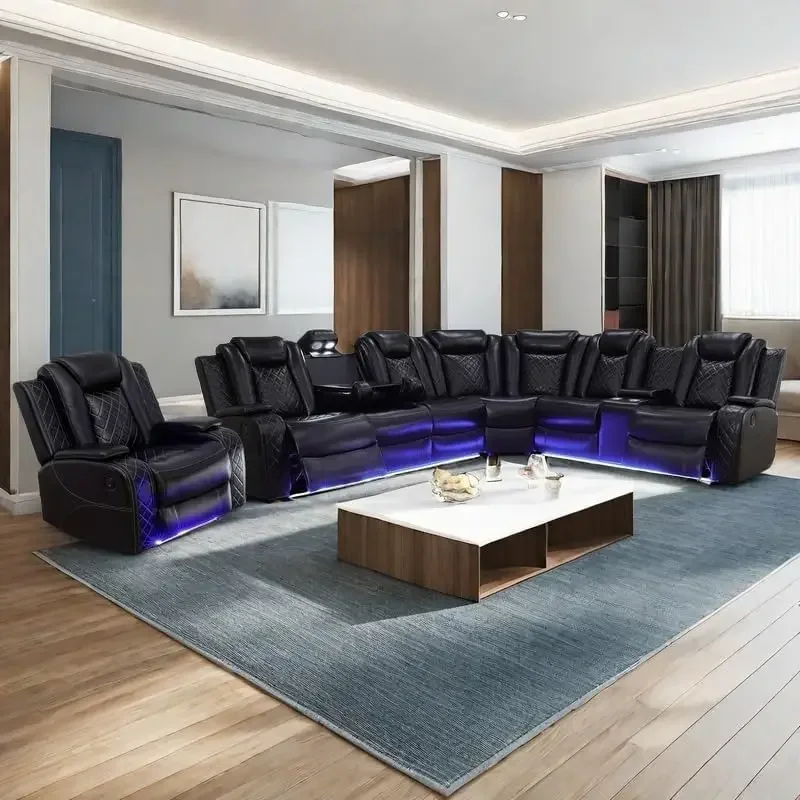 Power Recliner Sofa Sectional Sofa with LED Light for Living Room, Air Leather Reclining Corner Sectional Sofa Set