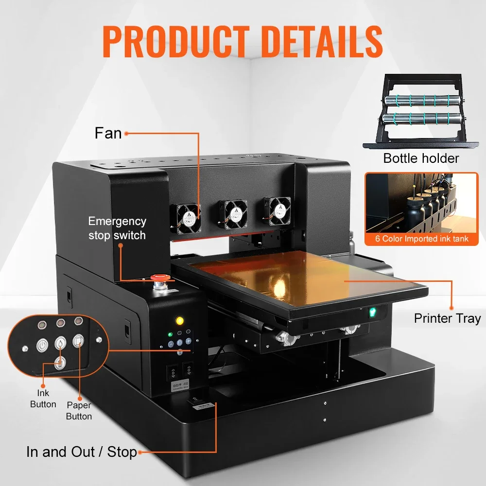 Sihao UV Printer A3 A4 DTF UV Printer UV LED Inkjet Printer USB 5760 x 1440dpi with Rotation for Bottles/Paper/Phone Case/PVC