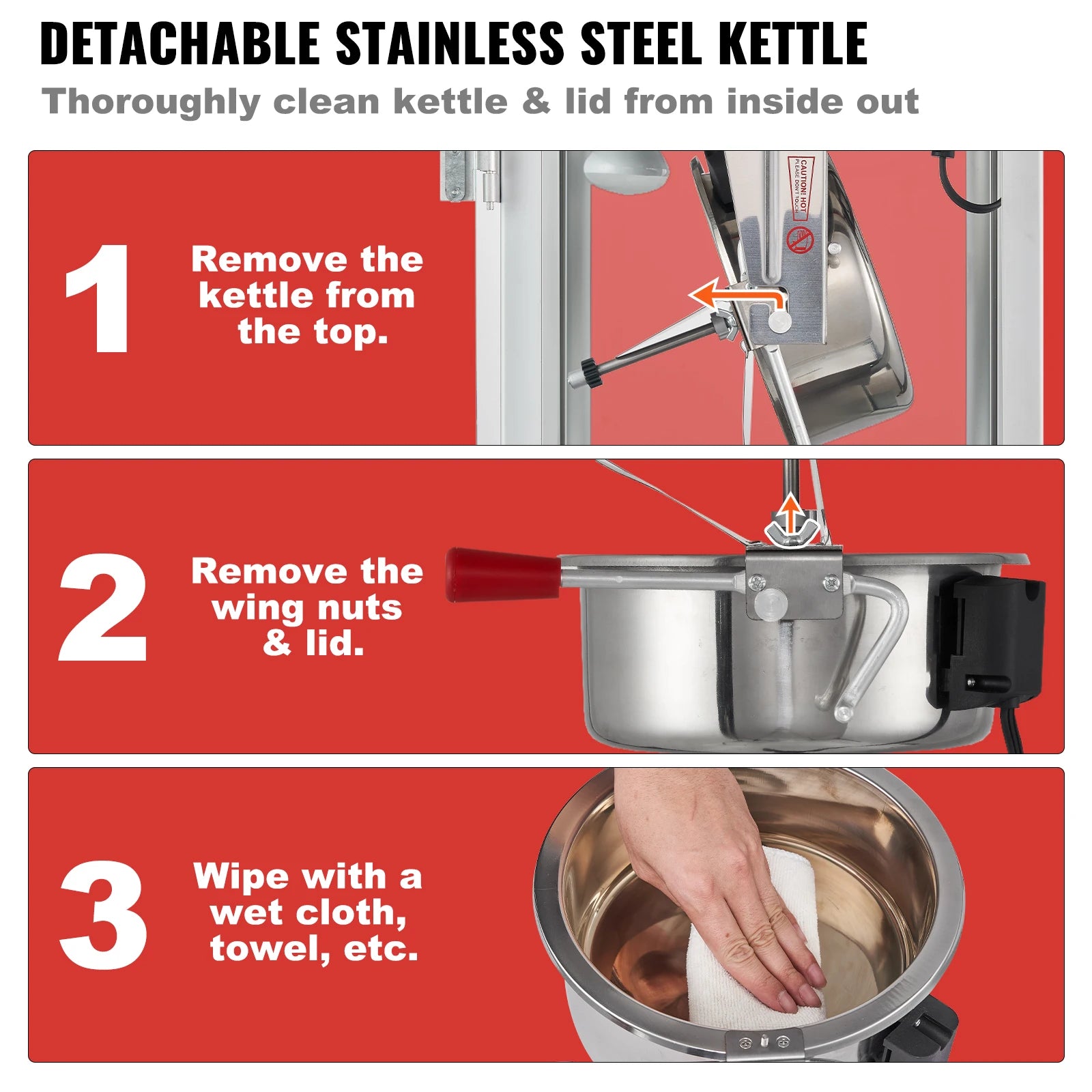 - You can churn out up to 384–640 oz per hour with the 8 oz kettle, powered by 850 W, keeping lines moving at festivals, stadiums, and fundraisers.