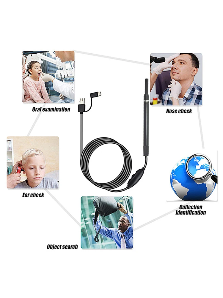 1.SupportAndroid / PC system, flexible semi-rigid cable, can be bent to maintain its shape, not only can enter the closed place for ear wax cleaning